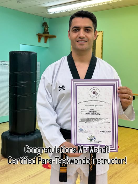 Congratulations Mr. Mehdi on becoming an Internationally Certified Para-Taekwondo Instructor and Member of the World Para-Taekwondo Instructors Association.